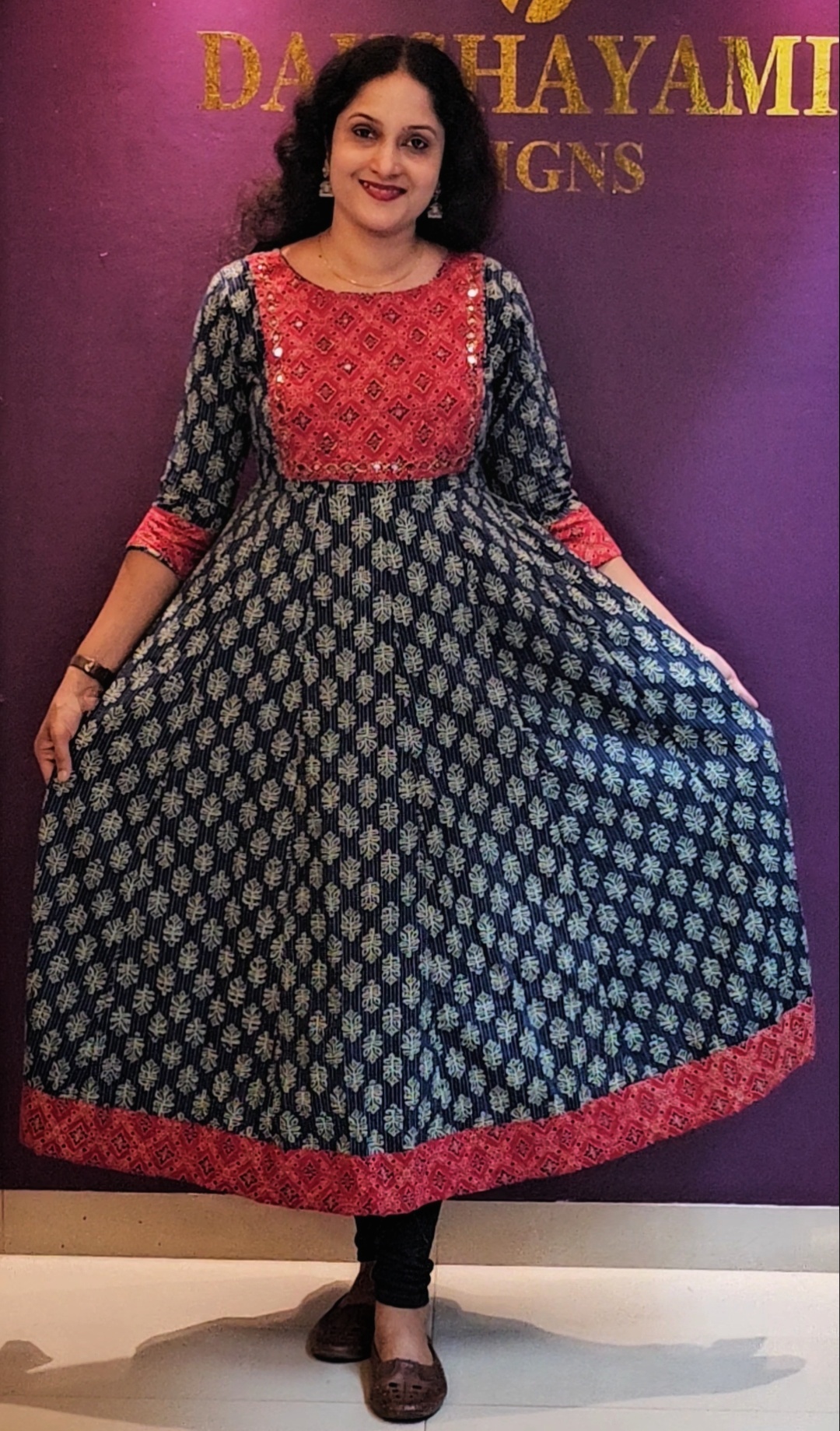 Kanta cotton Ajrak Panel cut Anarkali