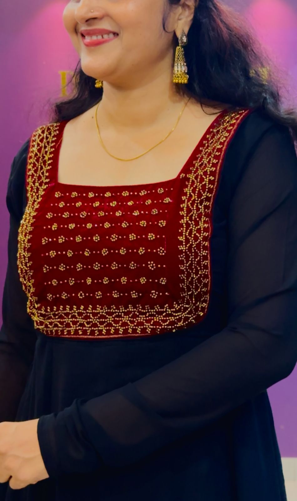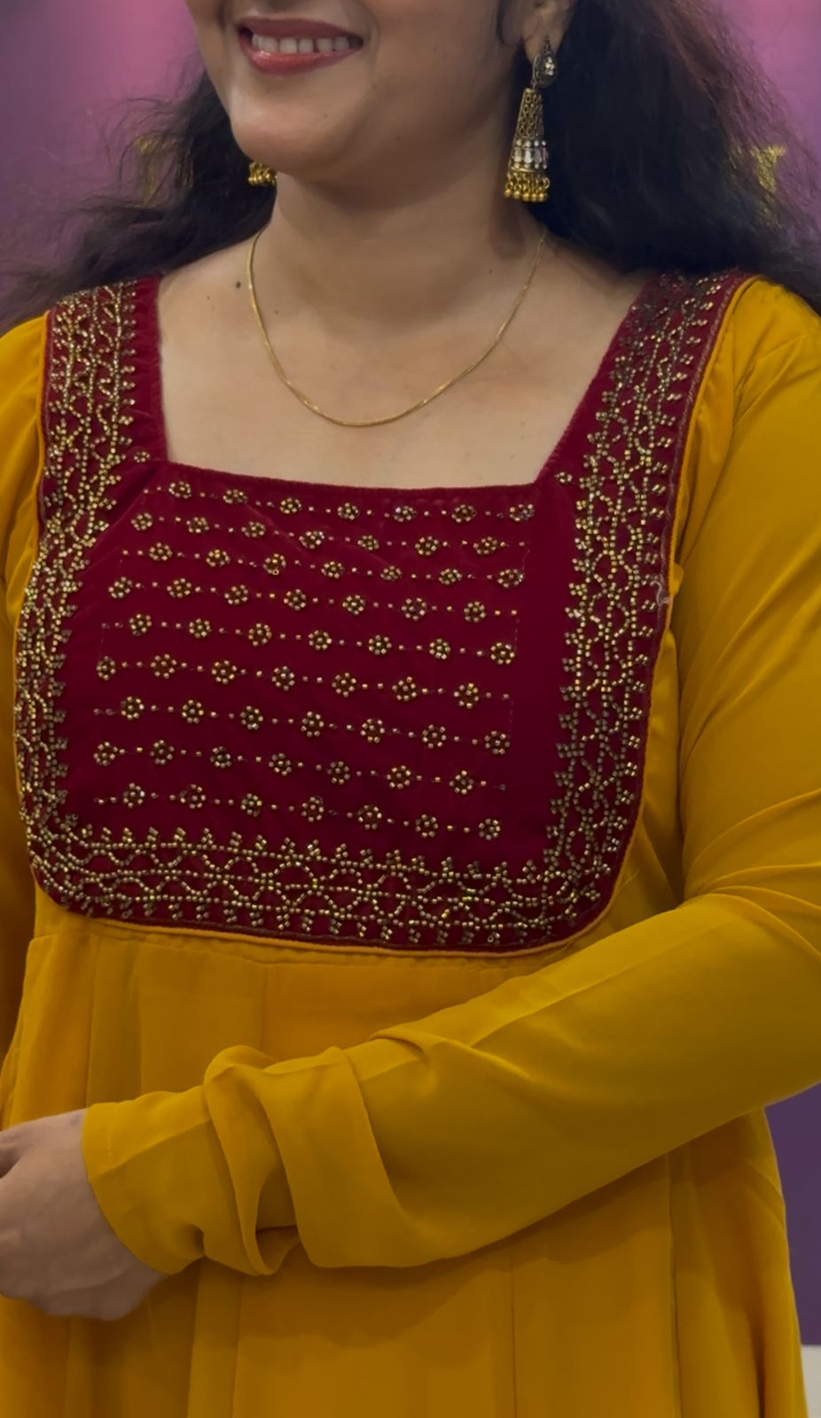 Georgette 12 panels Anarkali with churi sleeves